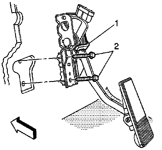Tighten the accelerator pedal bolts to 5 Nm (44 lb-in).