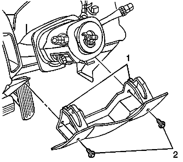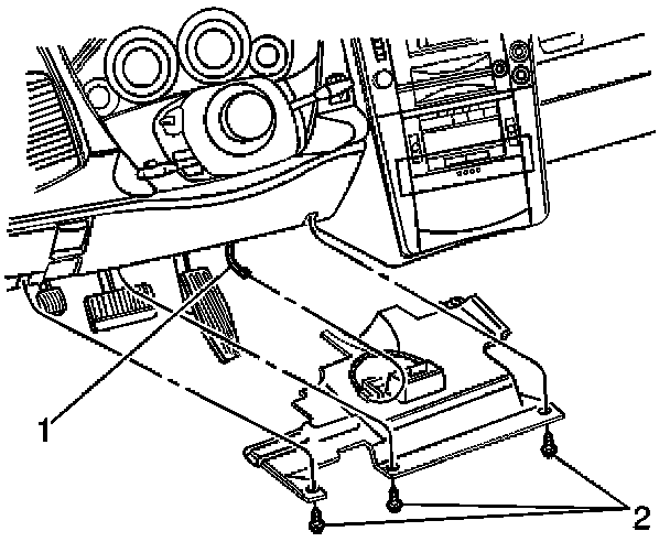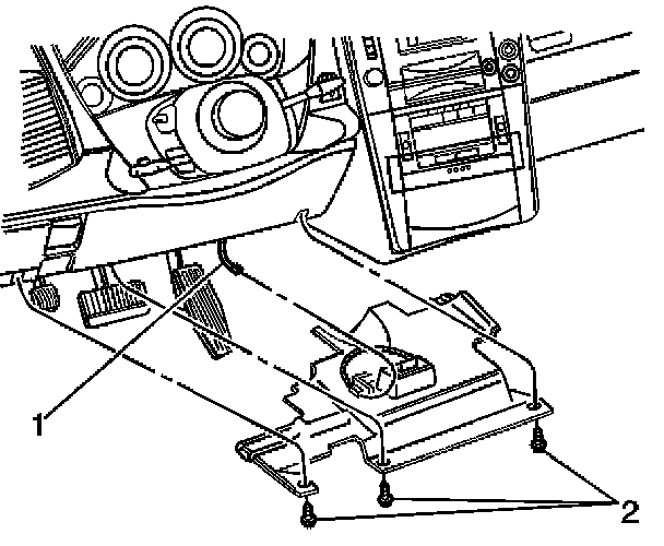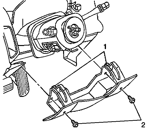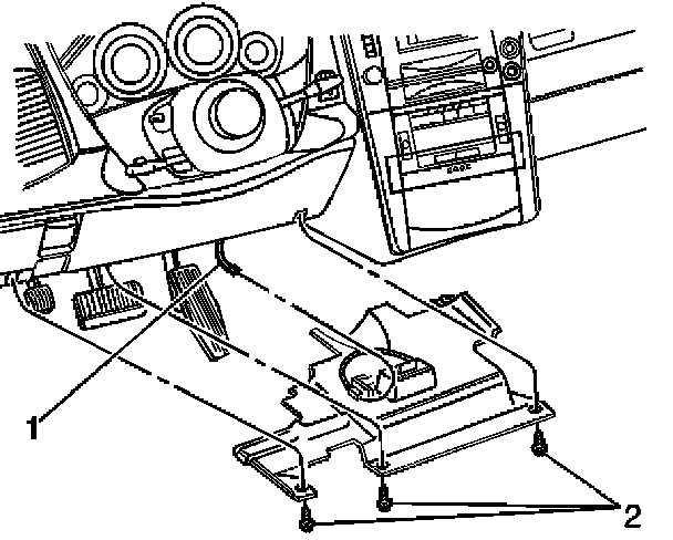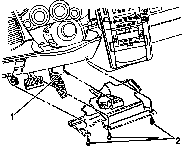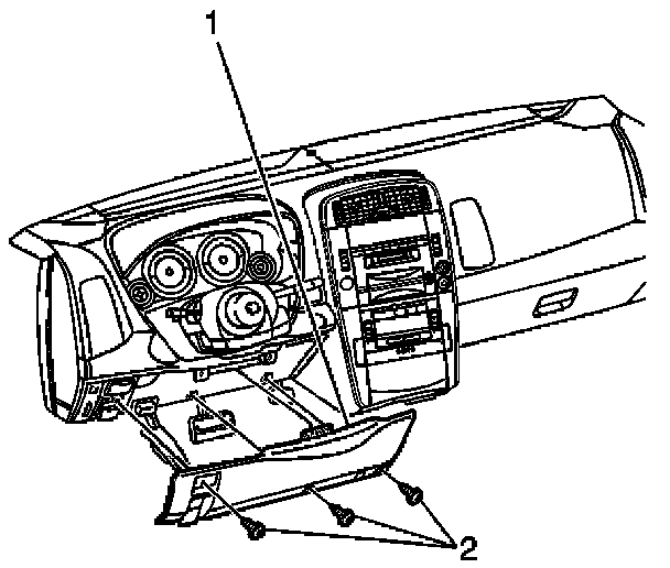 4. Remove the screws (2) securing the knee bolster trim (1) to the knee bolster bracket.