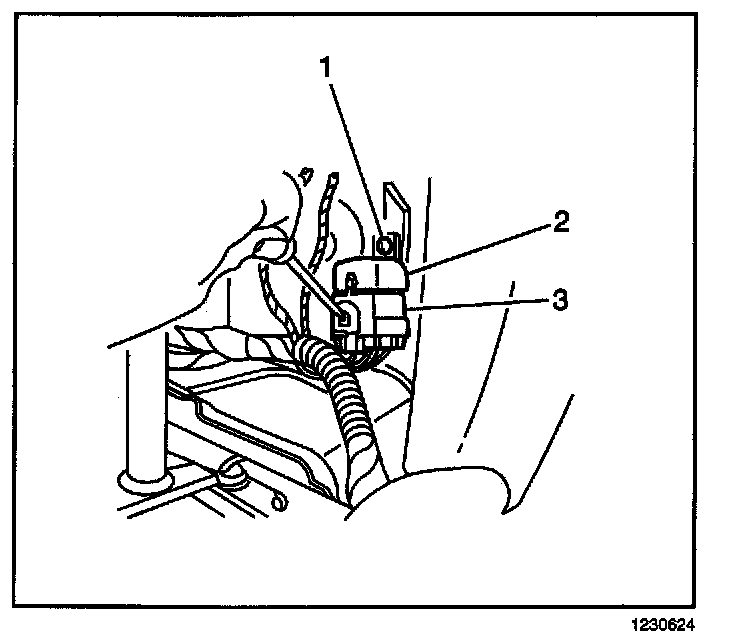 2. Connect the electrical harness connector (3) to the relay (2).