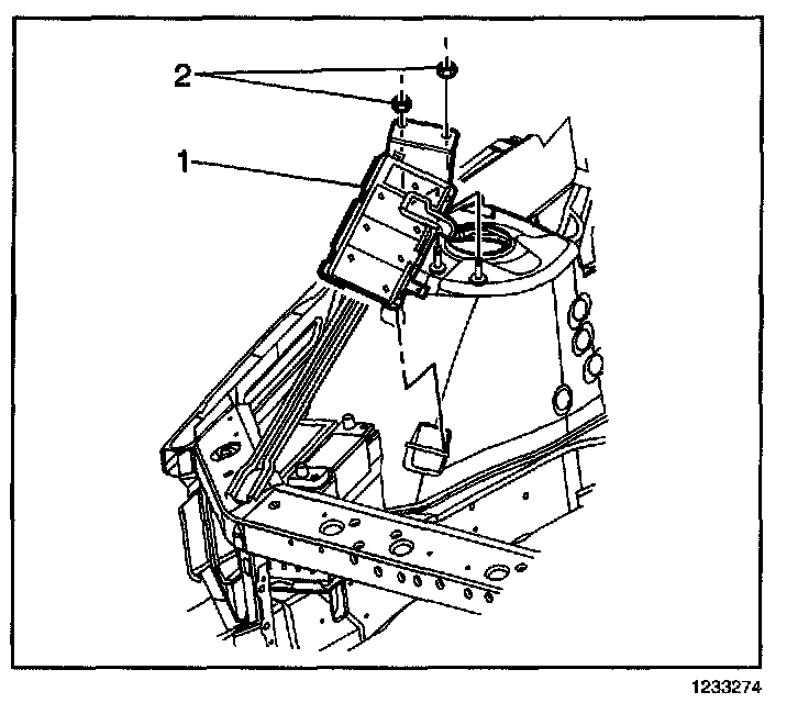 1.2. Install the BEC housing nuts (2) to the studs on the strut tower.