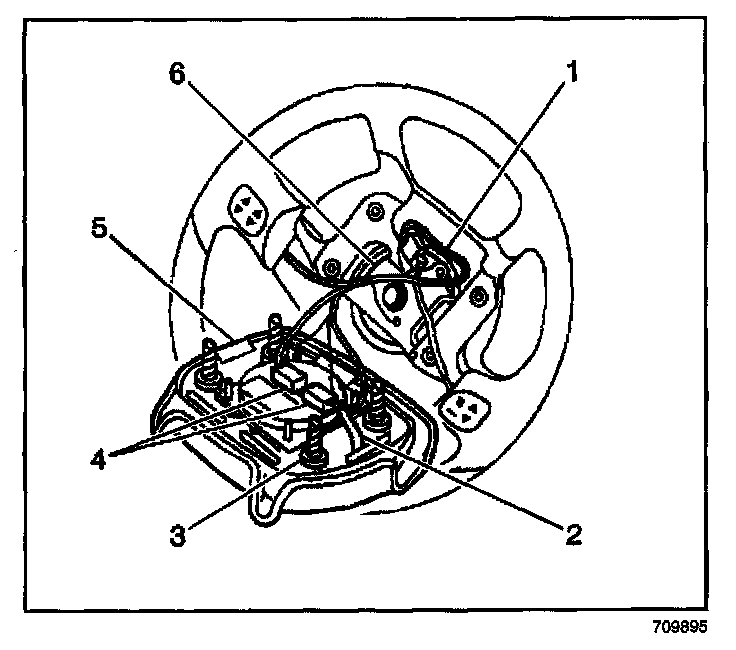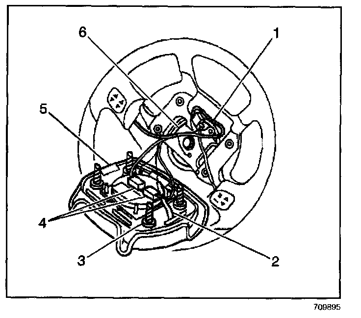 13. Remove the inflatable restraint steering wheel module (5).