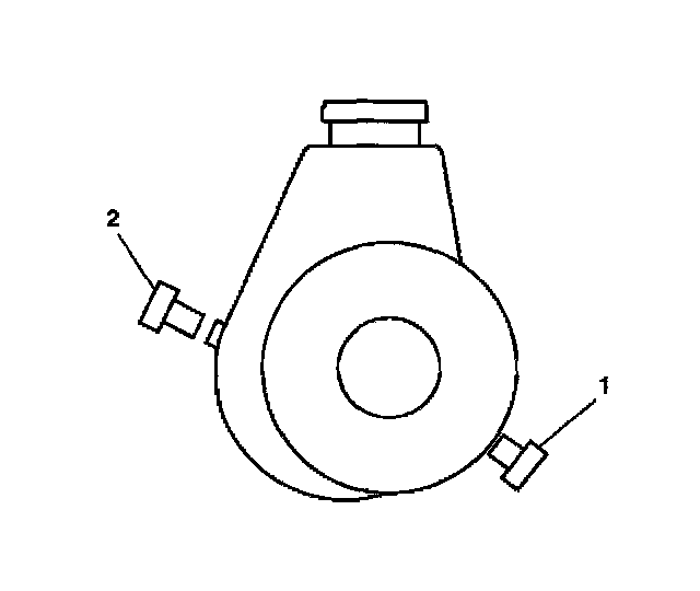 2. Install the plugs (1,2) supplied with the J43485 into the pressure and return port.