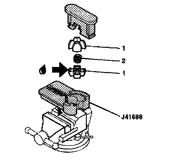 2. Install the centering sphere (1) and the joint preload spring (2) into J41688.