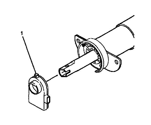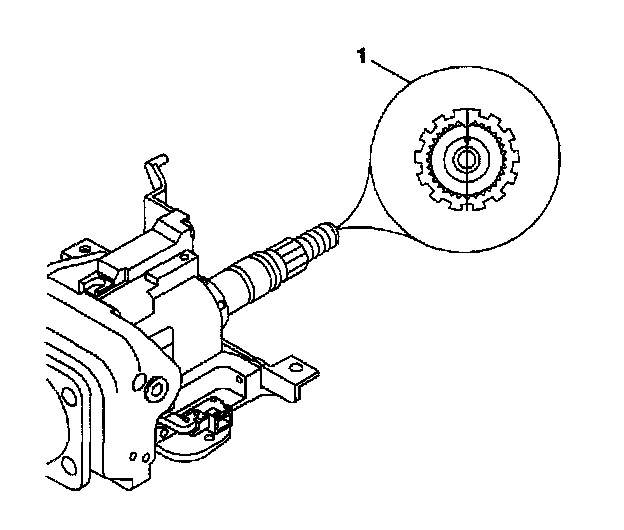 13. The upper steering shaft assembly must be rotated to the center position with the block tooth (1) in the 12 o'clock position.