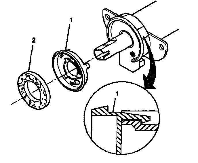 15. Install the sensor retainer (1). Align the slots of the sensor retainer to the ribs of the adapter and bearing assembly. Push the sensor retainer (1) until it contacts the analog extended range sensor assembly.