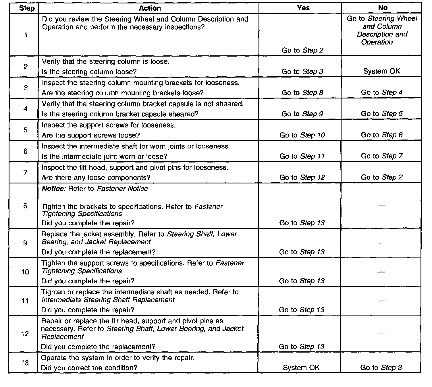 Looseness In Steering Column