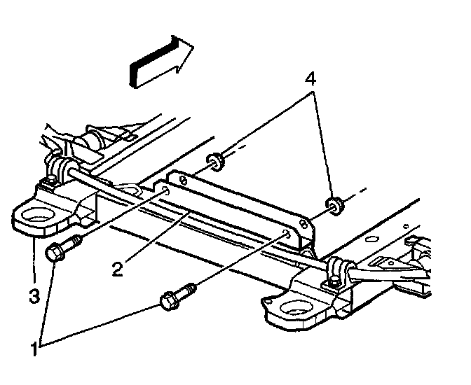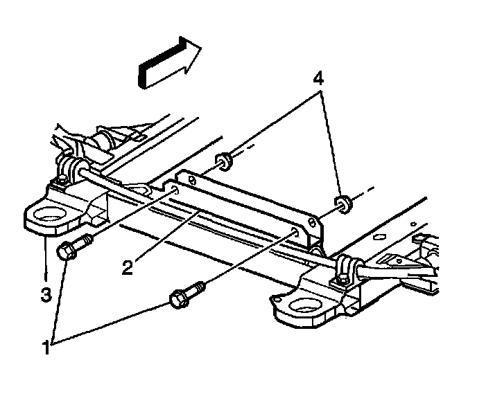 13. Remove the power steering gear mounting bolts and nuts (1,4).