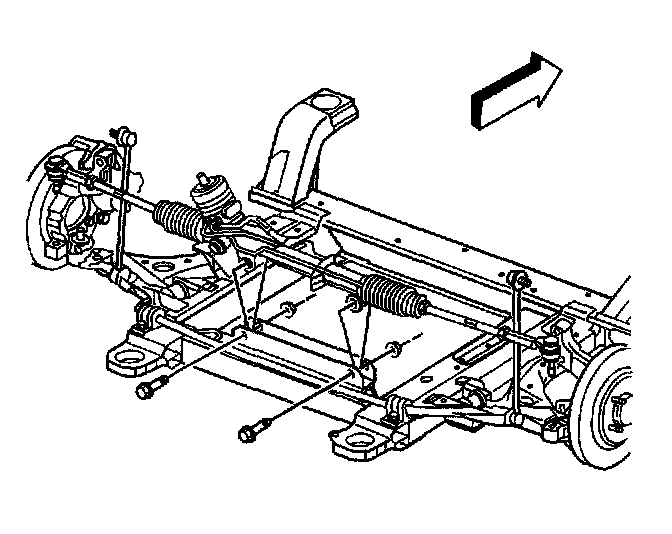 Notice: Refer to Fastener Notice in Service Precautions. Important: The power steering gear mounting bolts are different sizes.