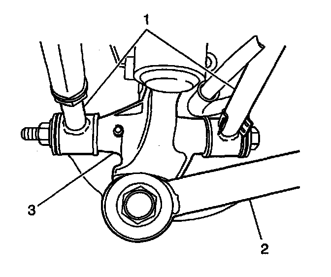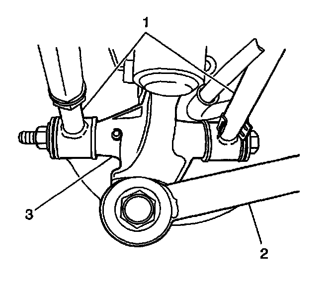 6. Remove the trailing arm (2) from the knuckle (3).