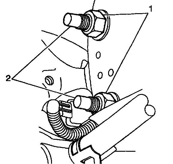 2. Hand start the strut to knuckle bolts (2) and nuts (1). Do not tighten the nuts at this time.