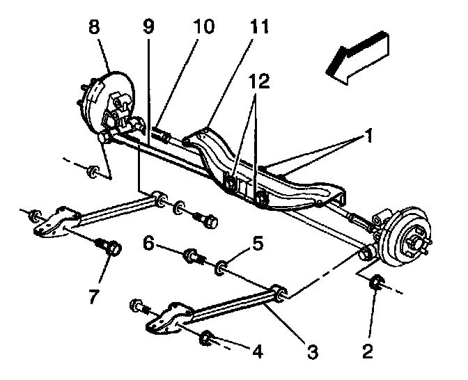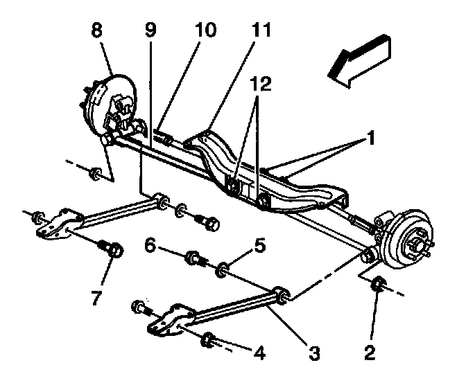 Important: Use a transmission jack or suitable hoist stands to prop the rear suspension support.