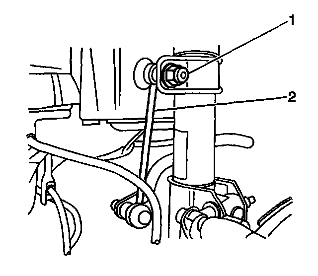 3. Remove the stabilizer shaft link nut (1) from the stabilizer shaft link (2) and the strut.