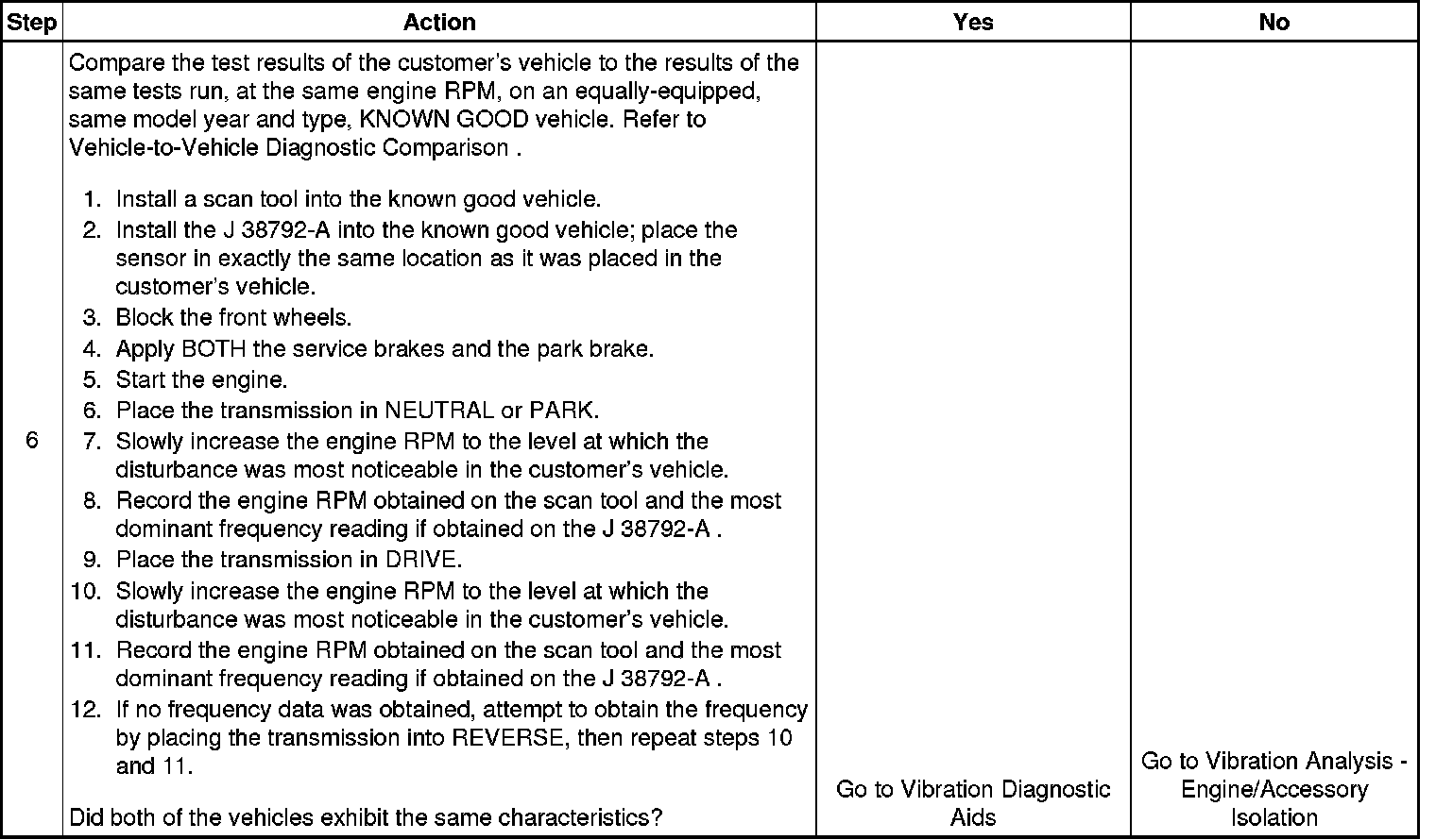 6. Making comparisons of the customer's vehicle with an equally equipped, same model year and type, KNOWN GOOD vehicle will help determine if certain disturbances may be characteristic of a vehicle design.
