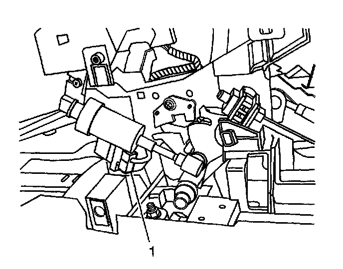 3. Disconnect the automatic transaxle shift lock actuator electrical connector (1).