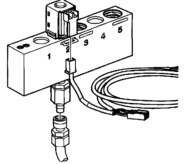 8. Observe the air flow through the solenoid. The flow will completely or nearly completely stop. Replace the solenoid if there continues to be an obvious air leak when the solenoid is energized.