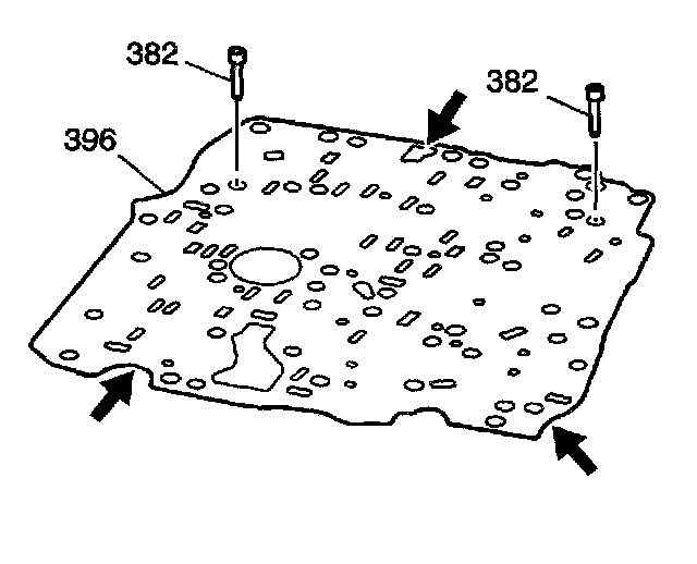 4. Install the spacer plate/gasket assembly (396) and the valve body (300).