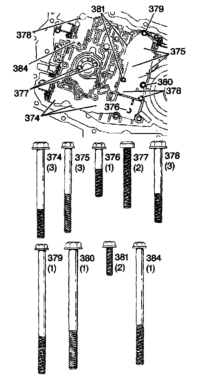 - Tighten the Me X 1.0 X 90 bolt (380) to 25 Nm (18 ft. lbs.).