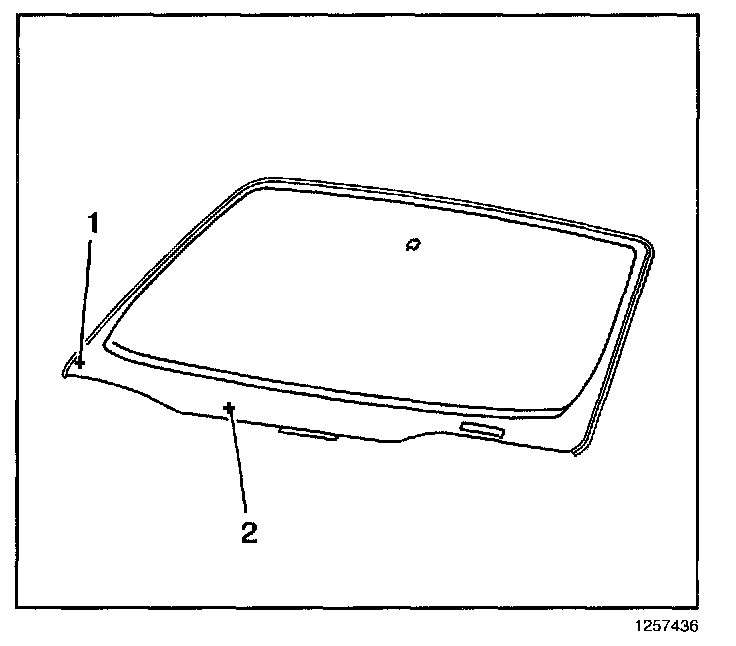2. Align the wiper blades to the small voids in the windshield blackout (1 and 2).