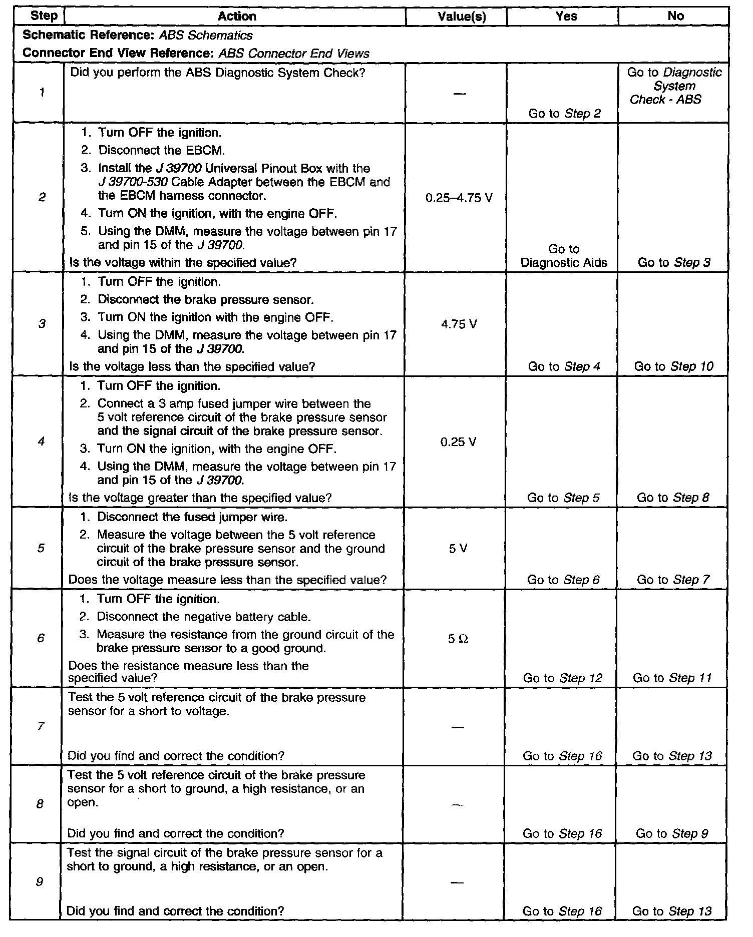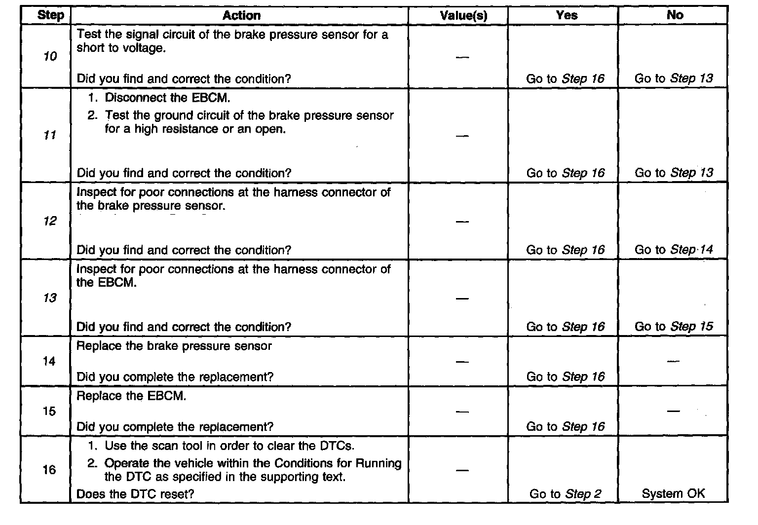 10. Tests for a short to voltage in the brake pressure sensor signal circuit.