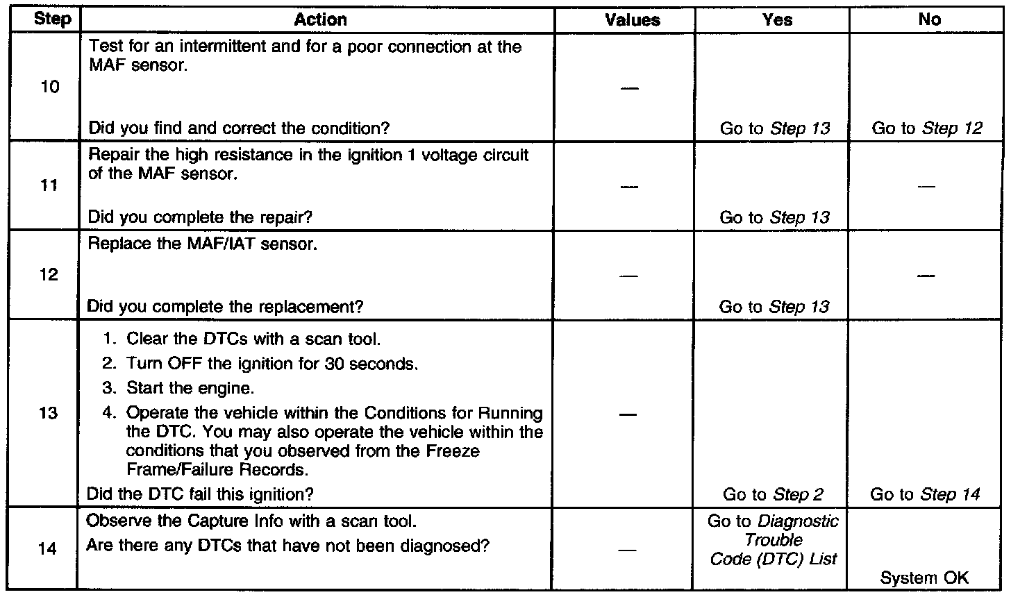 - A low minimum air rate through the sensor bore at idle or during deceleration may cause this DTC to set. Inspect for the following conditions: