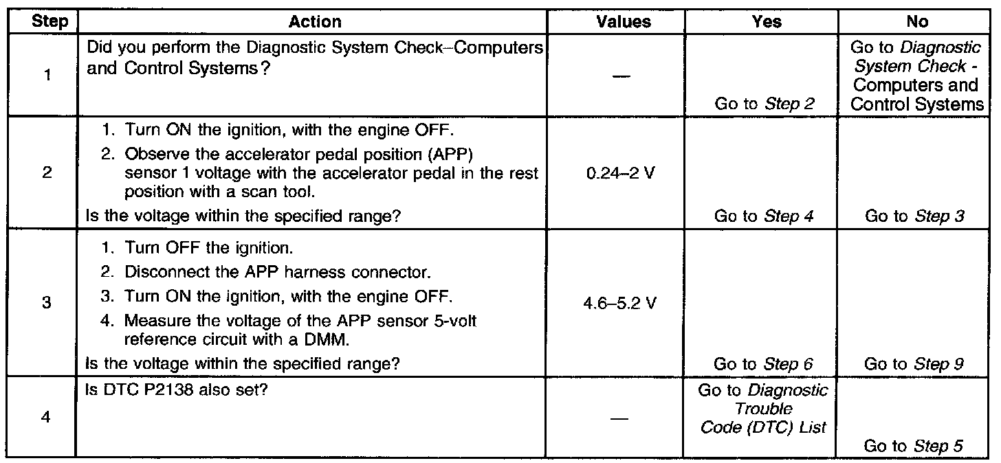 - The APP sensor 1 voltage is less than 0.235 volt or more than 4.487 volts.