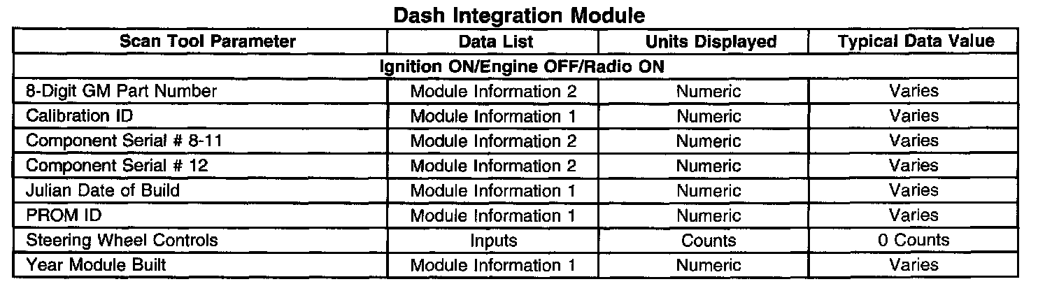 Scan Tool Data List - Dash Integration Module: