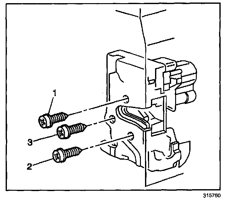 4. Install the screws to the door lock (1, 3, 2). Install the top screw first (1), then the bottom (2) and lastly the middle screw (3).