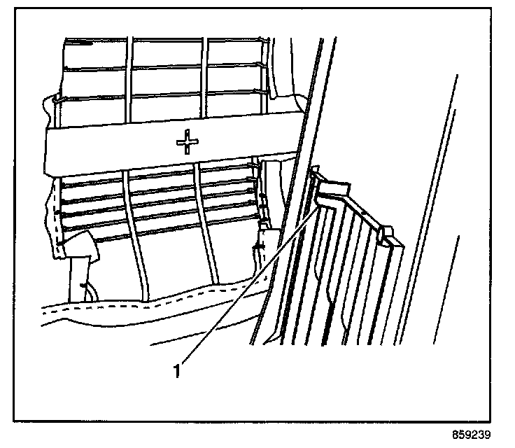 4. Engage the locator tab (1) in the seat back