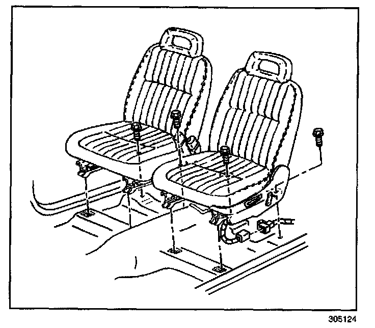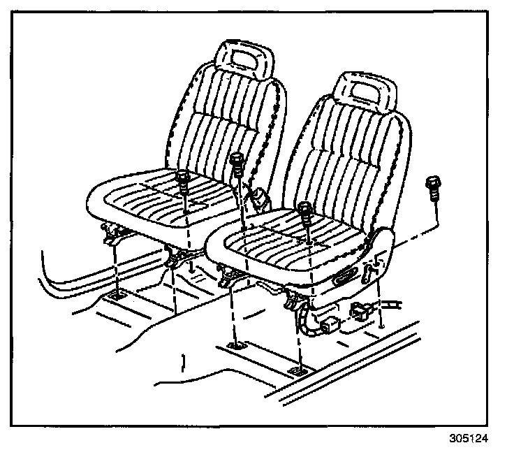 5. Tip the seat forward and engage the seat hook attachments to the floor pan.