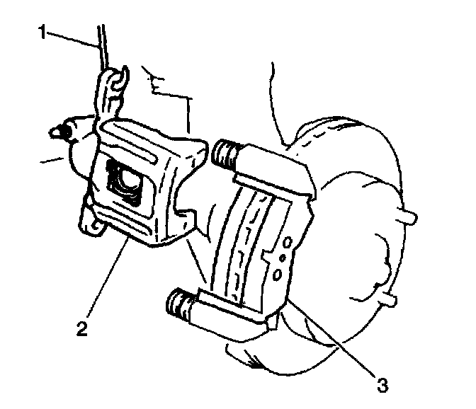 4. Remove the brake caliper bracket (3). Refer to Brake Caliper Bracket Replacement - Rear.