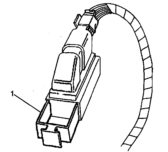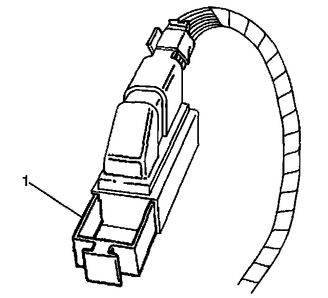 6. Connect the EBCM harness connector. Push in lock tab (1).