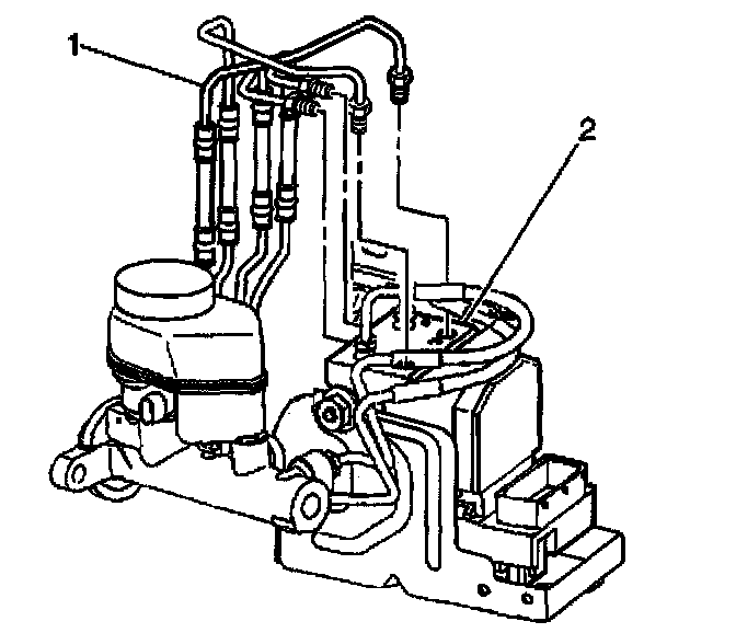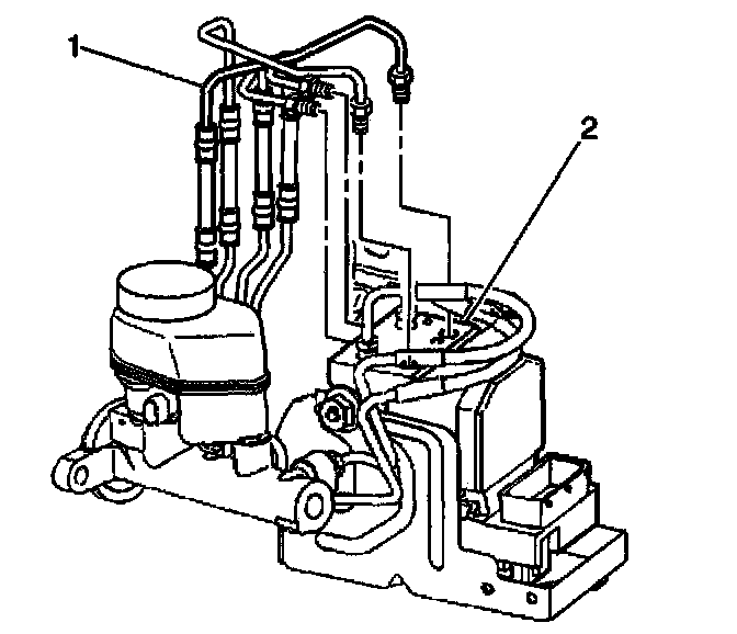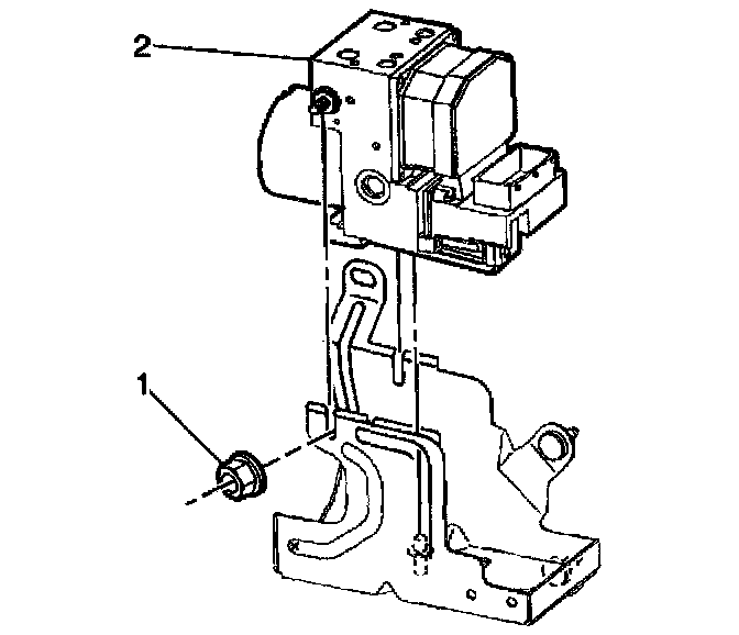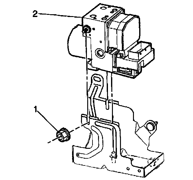 7. Remove the BPMV (2) and EBCM as an assembly from the vehicle.