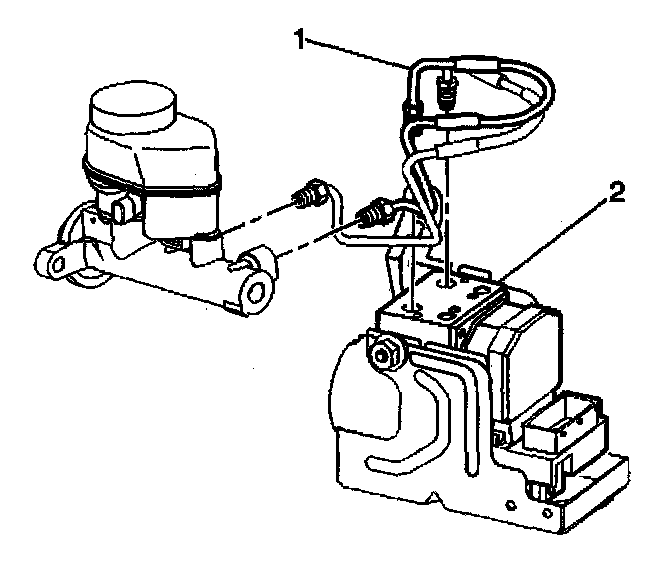 4. Install the master cylinder brake pipes (1) on the BPMV (2).