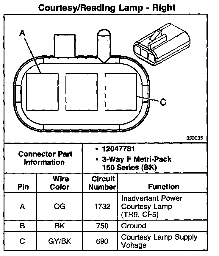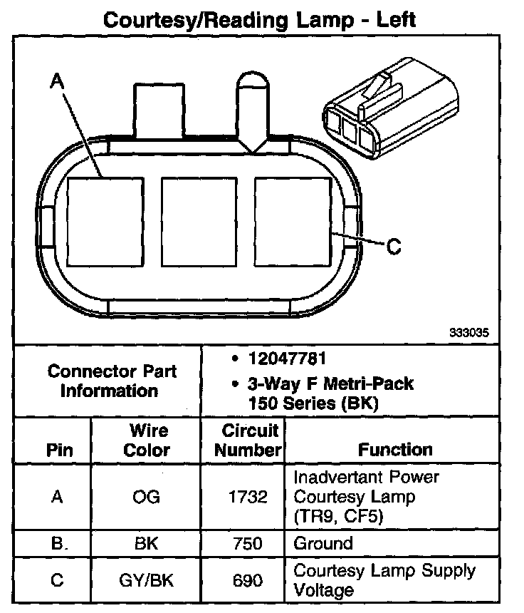 Courtesy/Reading Lamp - Front (With RPO Code TR9, CF5):