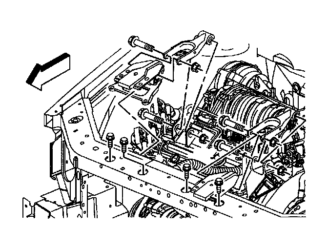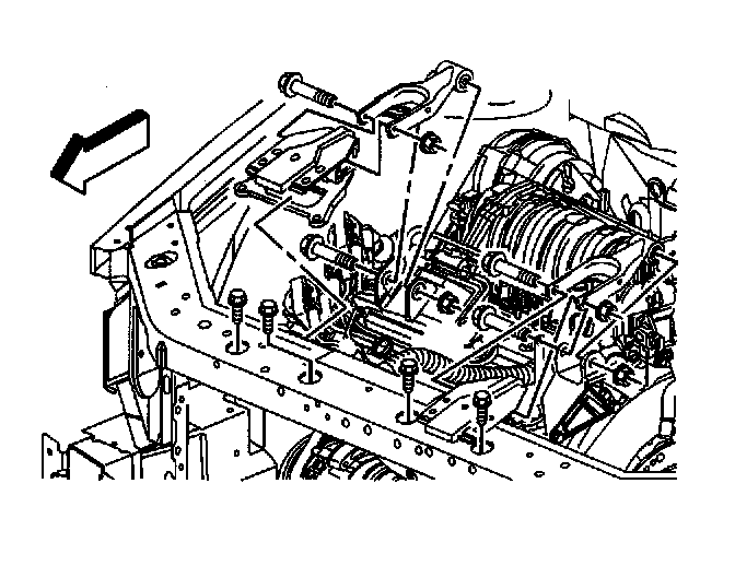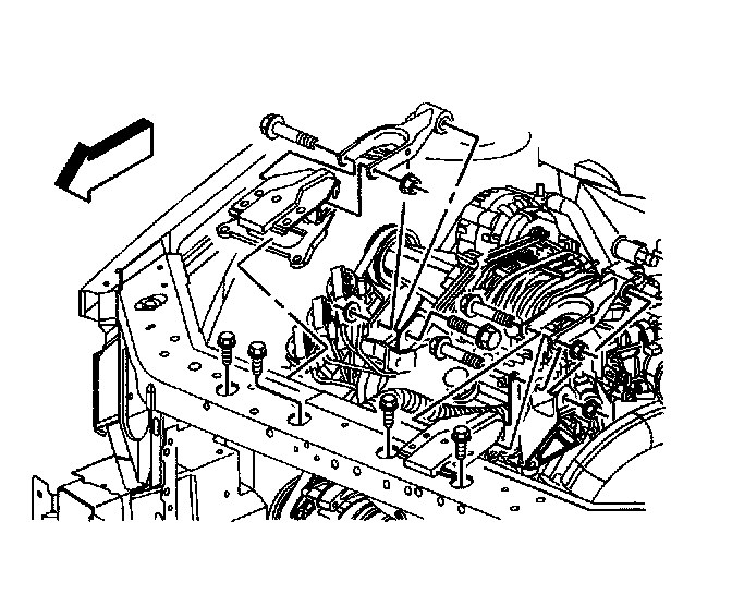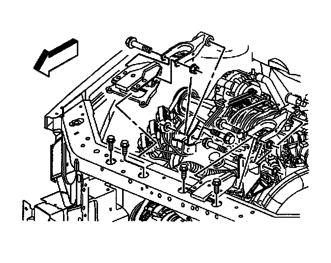Removal Procedure1. If equipped with a L26 engine, remove the bolt and the nut from the right engine mount strut at the right engine mount strut bracket on the engine.
