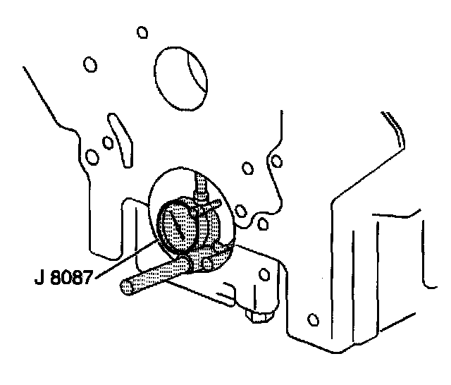 12. Inspect the crankshaft main bearing bores. Use J8087 to measure the bearing bore concentricity and alignment at the following locations:
