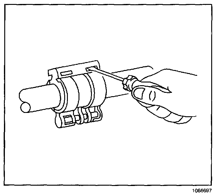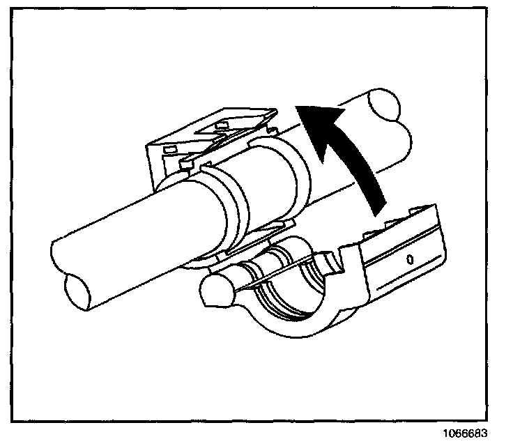 IMPORTANT: When separating the A/C coupling assembly, apply light pressure between the two halves of the coupling to prevent the locking tabs from reengaging.