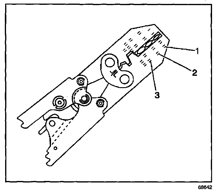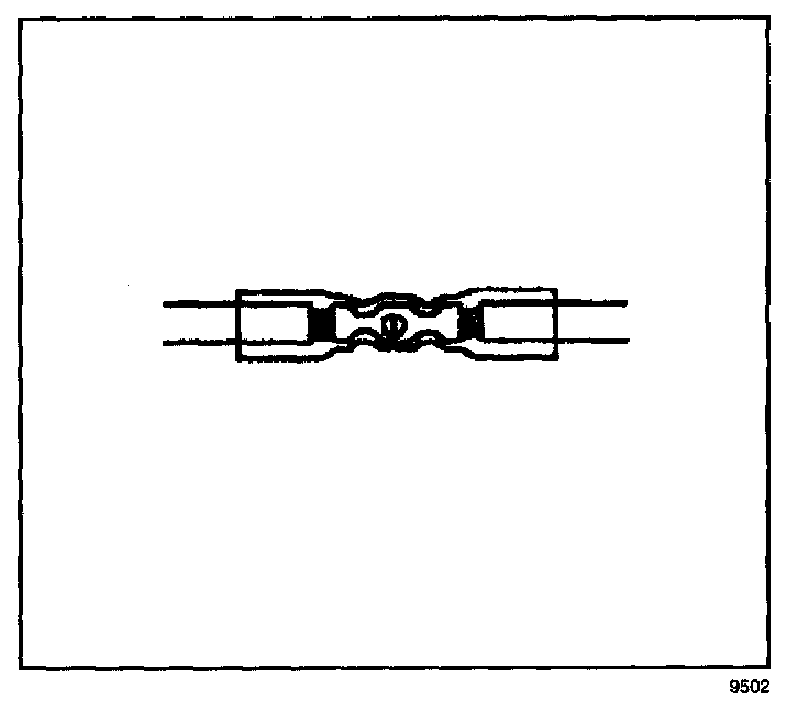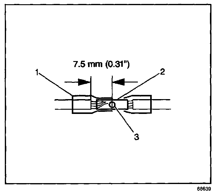 6. Place the splice sleeve in the nest. Ensure that the crimp falls midway between the end of the barrel and the stop. The sleeve has a stop (3) in the middle of the barrel (2) in order to prevent the wire (1) from going further. Close the hand crimper handles slightly in order to firmly hold the splice sleeve in the proper nest.