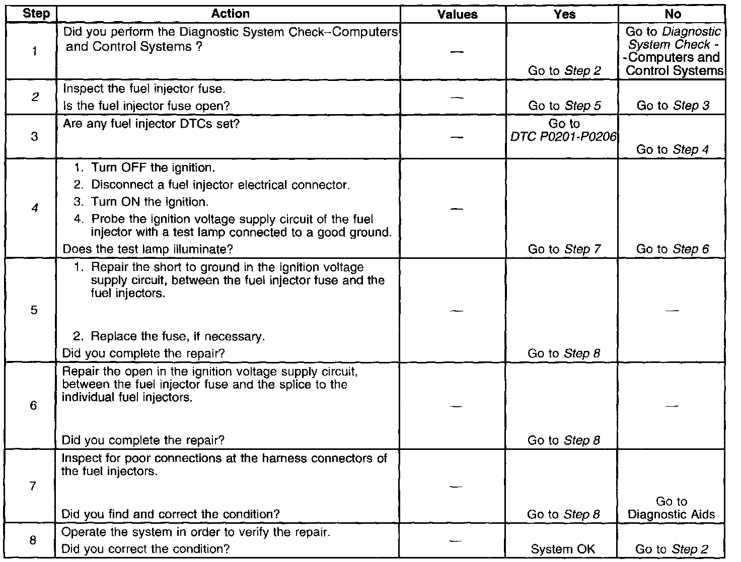 Fuel Injector Circuit Diagnosis