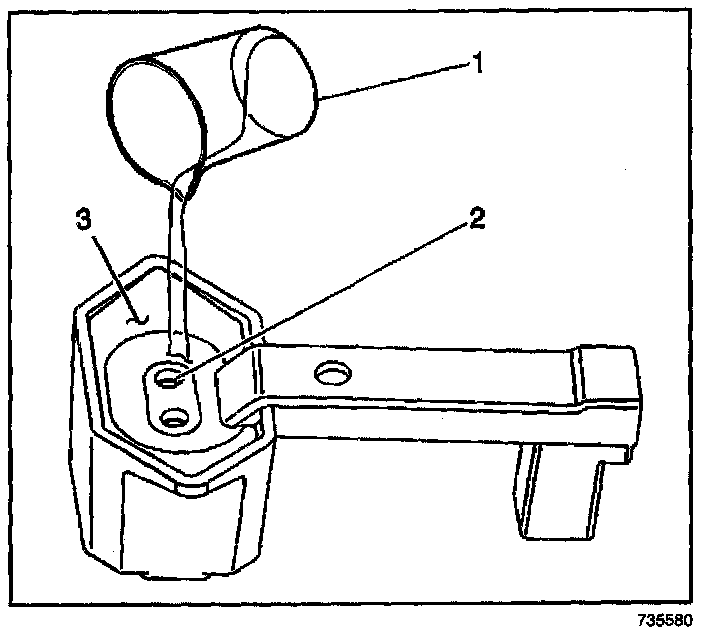 5. Place the bleed hose (1) of the fuel pressure gage into the 100 ml beaker (2).