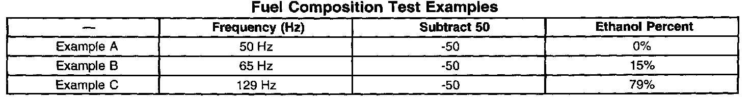 12. Subtract 50 from the reading on the DMM to obtain the percentage of alcohol in the fuel sample. Refer to the examples in the table.