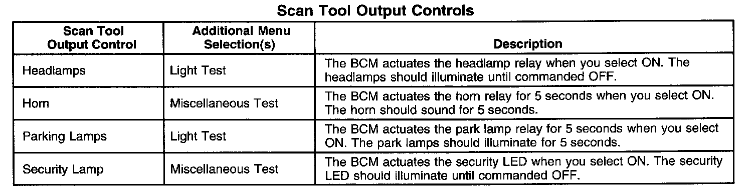 Scan Tool Output Controls: