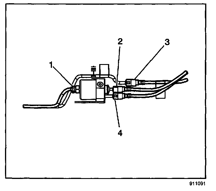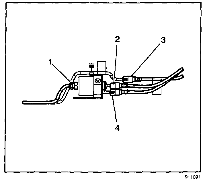 13. Connect the fuel feed (4) the fuel return (2) and the evaporative emission (EVAP) (3) pipes at the fuel filter area.