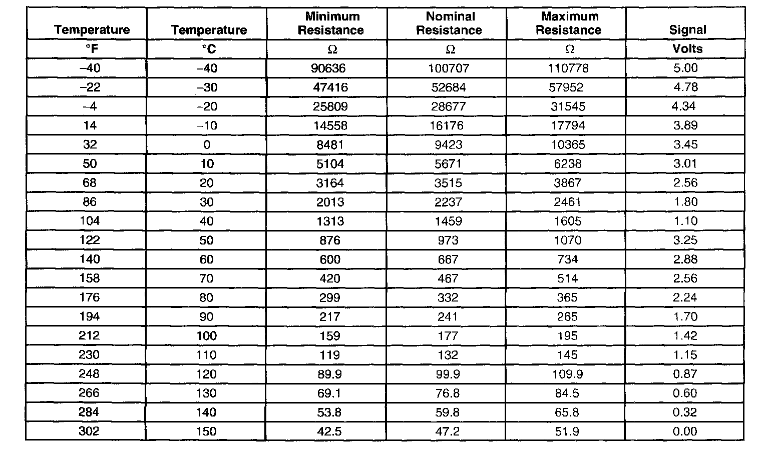 Transmission Fluid Temperature (TFT) Sensor Specifications: