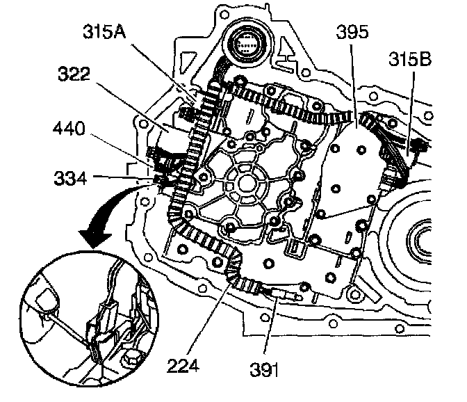 2. Install the TCC PWM solenoid retaining clip (314F).