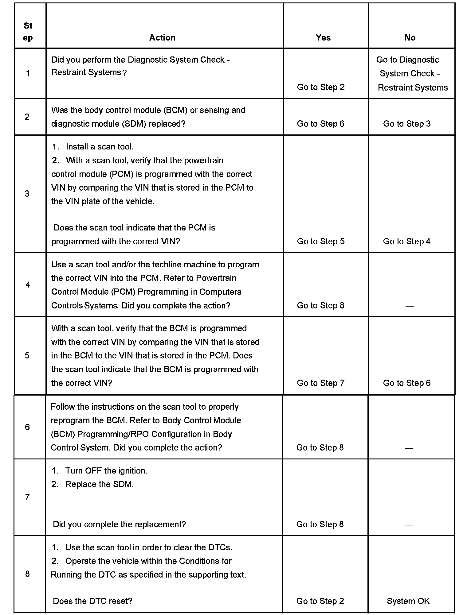 The restraints ID that is stored in the SDM matches the restraints ID that is stored in the BCM and the VIN information that is stored in the SDM matches the VIN information that is stored in the BCM.