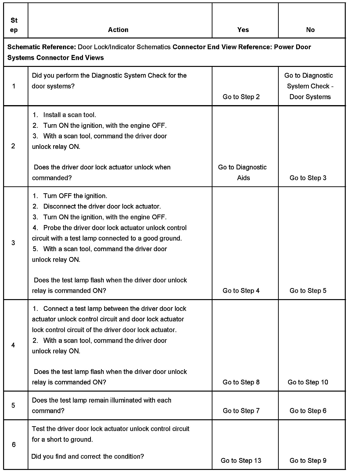 4. Tests for an open in the door lock actuator lock circuit to the driver door lock actuator.