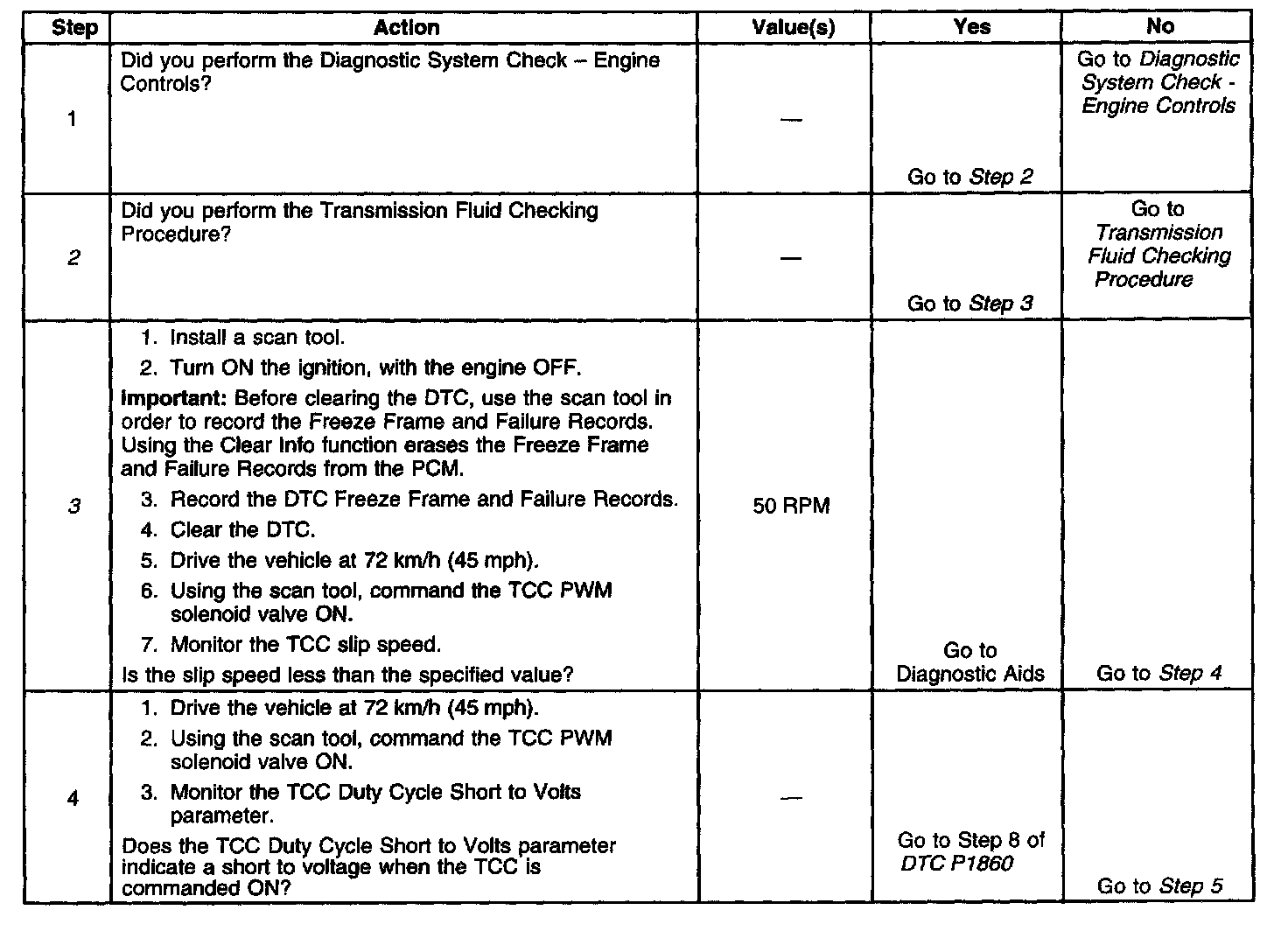 3. This step verifies that the TCC engages when commanded ON by the scan tool.