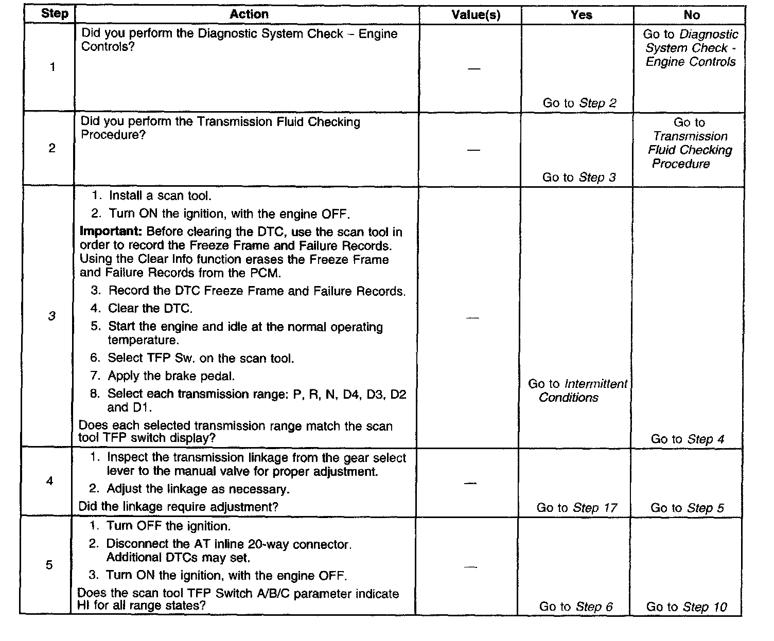 3. This step tests the indicated range signal to the manual valve range actually selected.