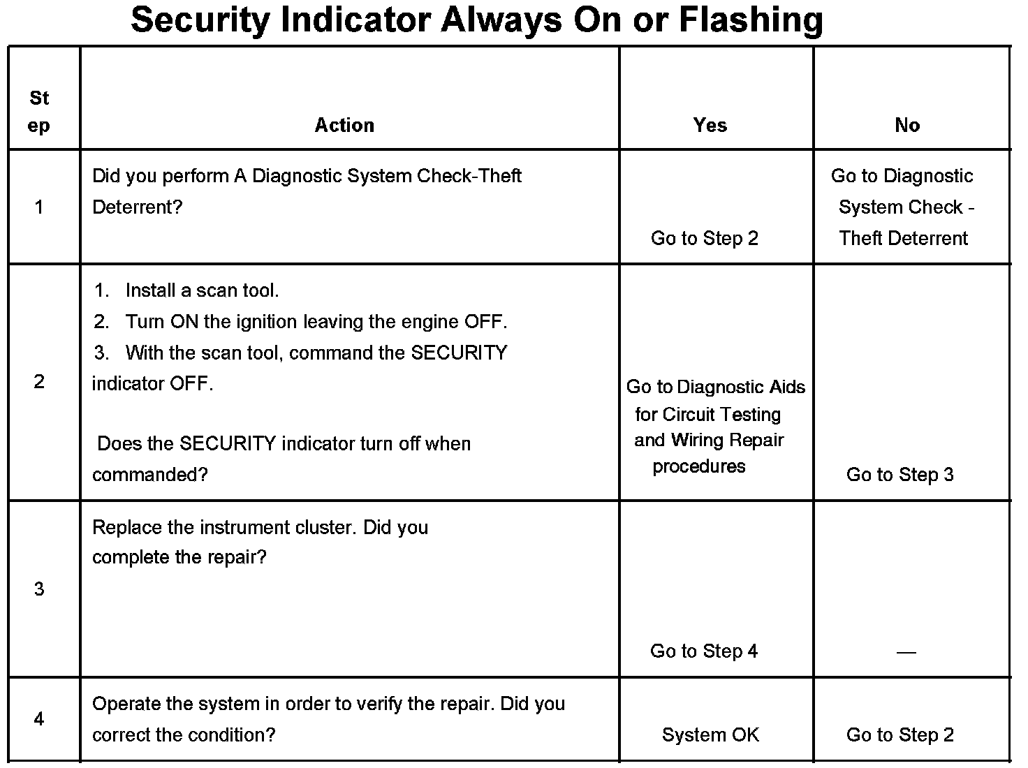 SECURITY Indicator Always ON or Flashing
